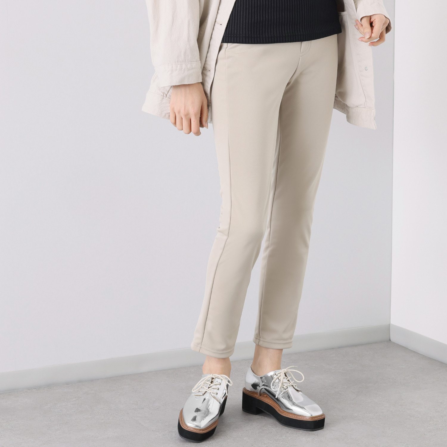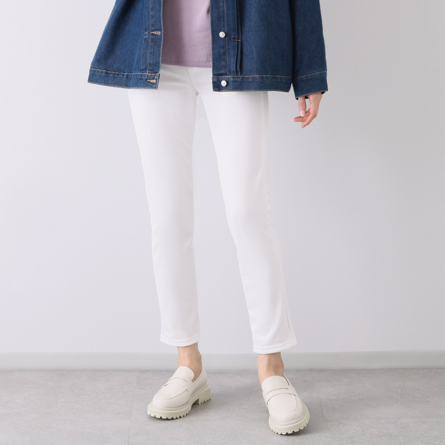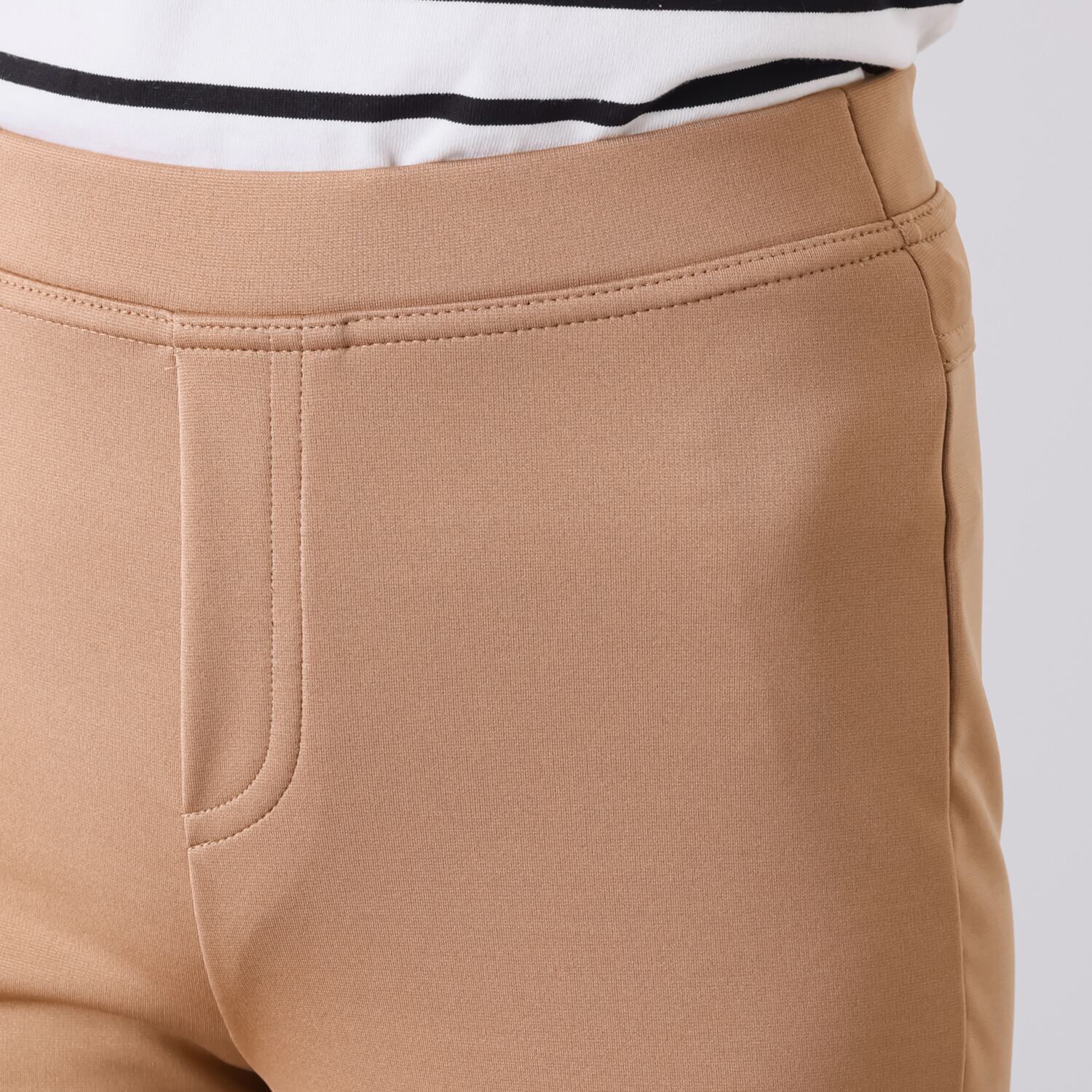 多機能素材を使用した軽やかなパンツ。お家スタイルから動きの多いシーンまで、デイリーに活躍します。